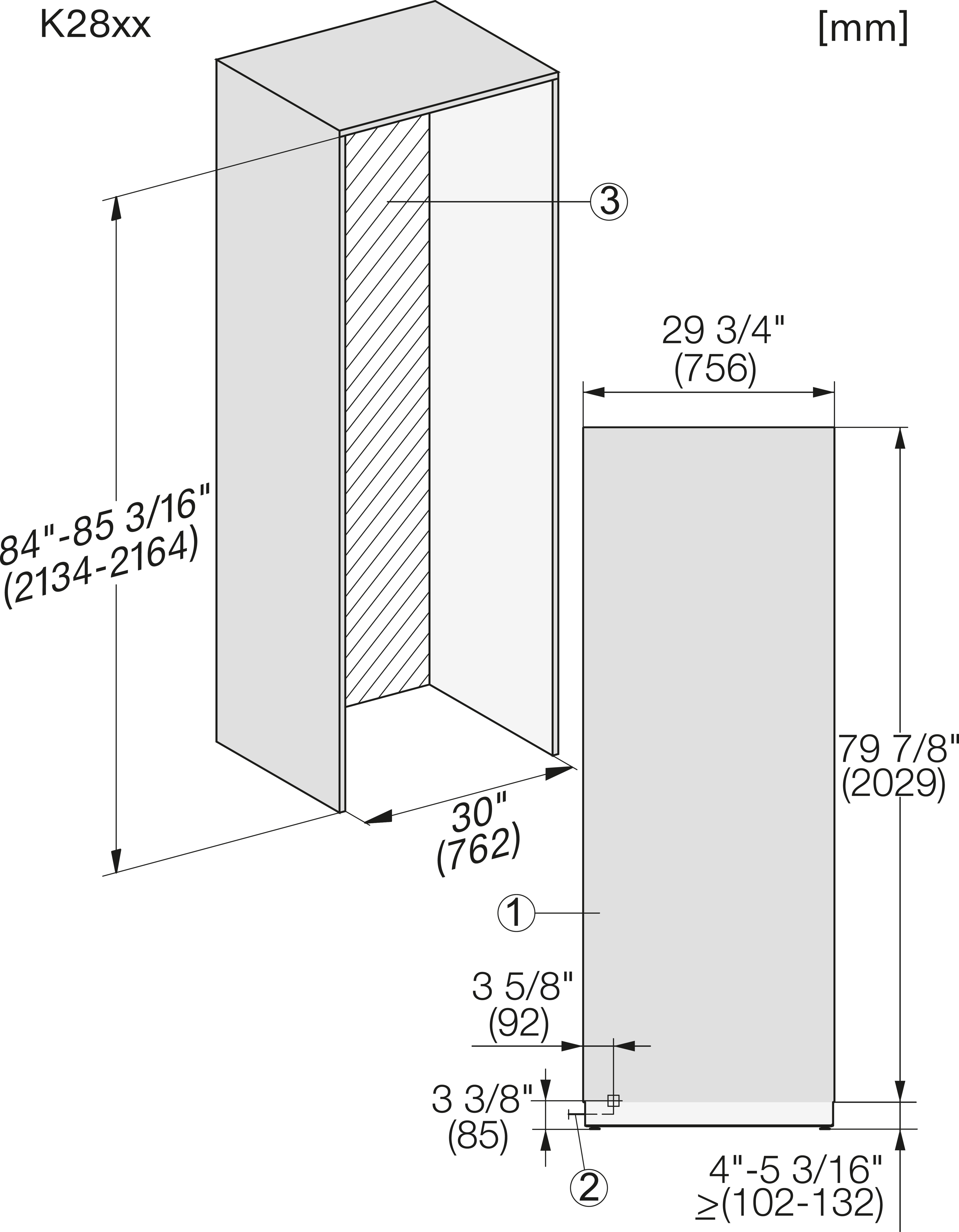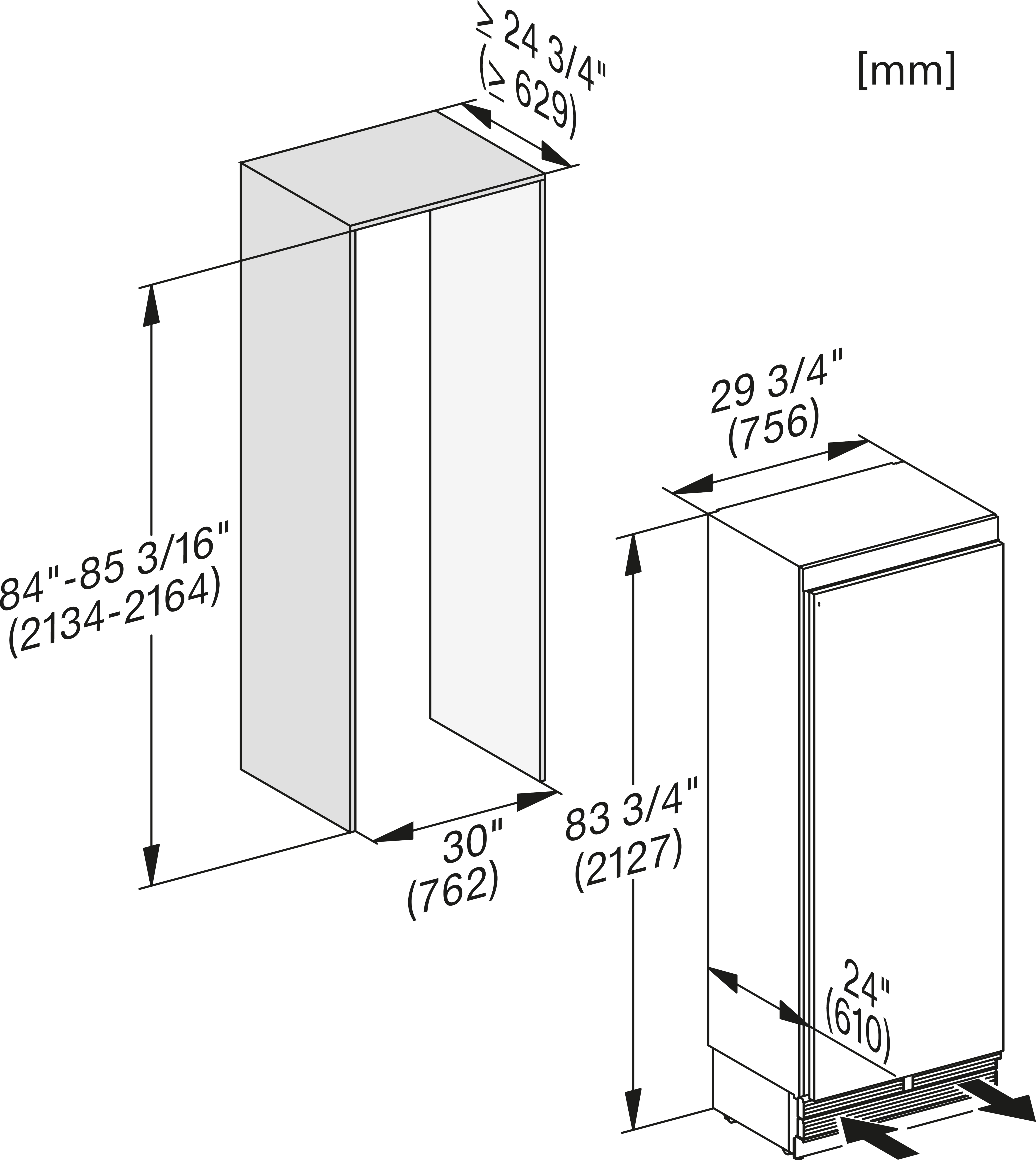 Габариты ниши: 762-765 x 2,134-2,164 x 629 мм