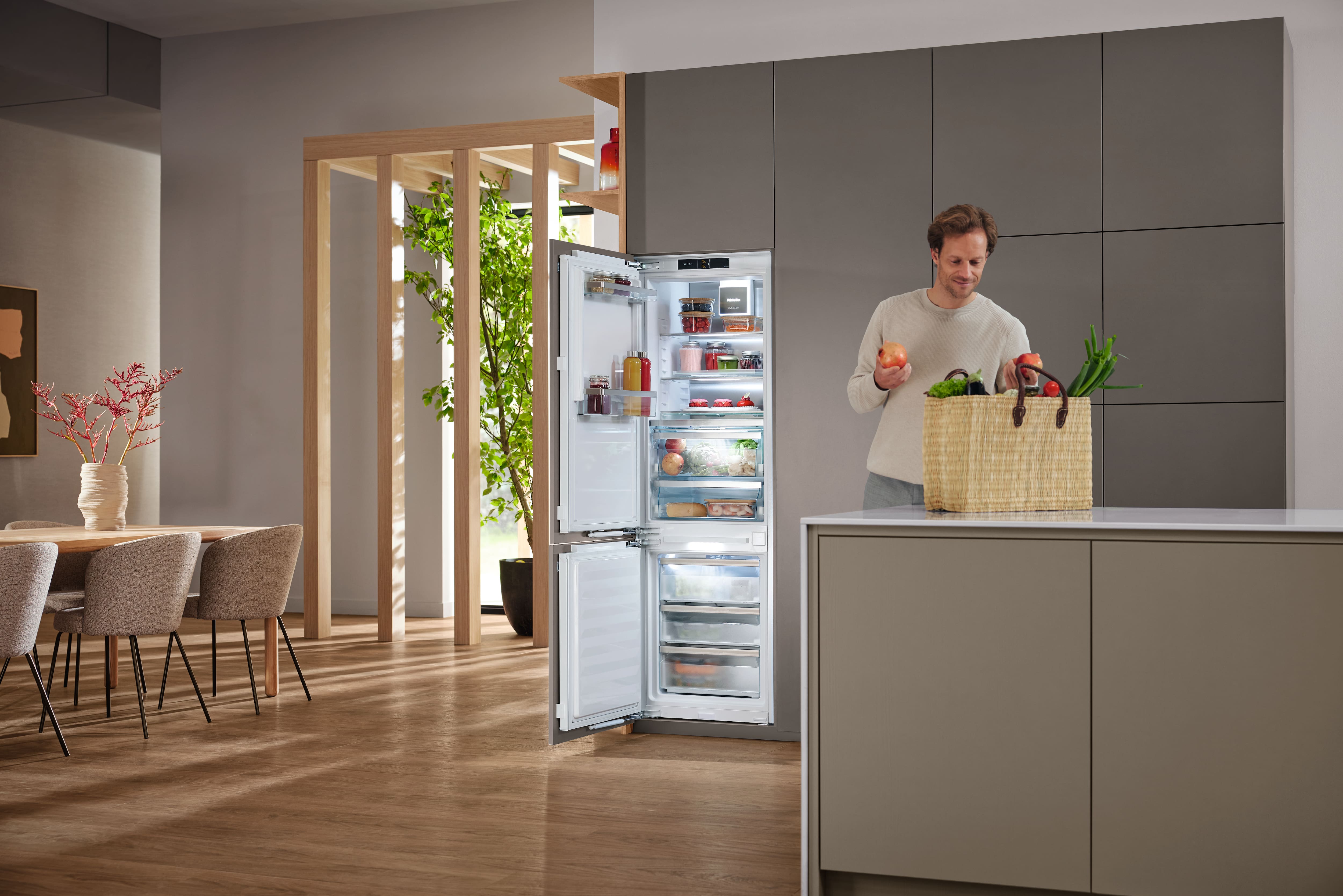 Встраиваемая комбинация холодильника и морозильника для особого внешнего вида благодаря PerfectFresh Active, Freeze&Cool и IceMaker.