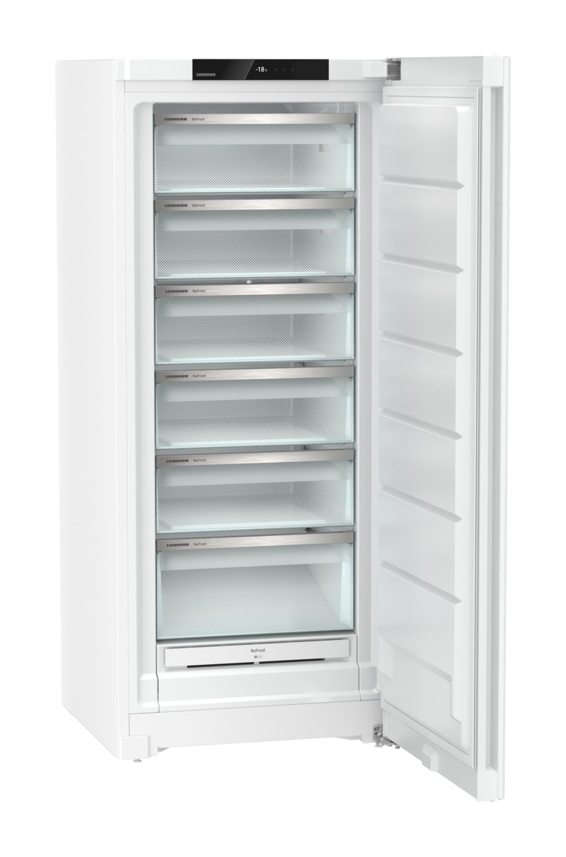 Морозильник (морозильная камера) Liebherr FNd 7026 с системой NoFrost и полезным объемом 307 литров. Отдельностоящий морозильник с шестью контейнерами вписывается в нишу глубиной 60 сантиметров, выступает только дверь. Верхний выдвижной ящик с функцией наклона. Ограничитель предотвращает выпадение ящика. С технологией FrostProtect использовать модель серии Plus можно в неотапливаемых помещениях с температурой воздуха не ниже -15℃: подвал, гараж или балкон.