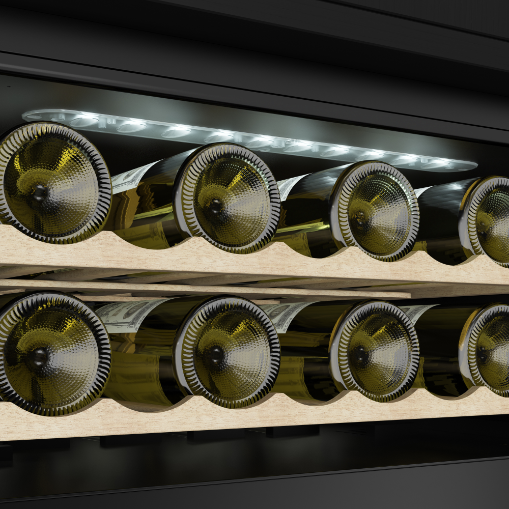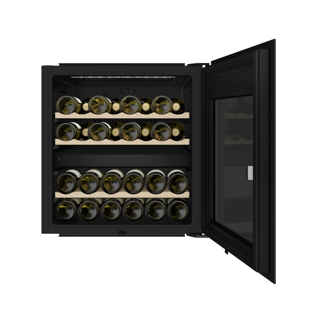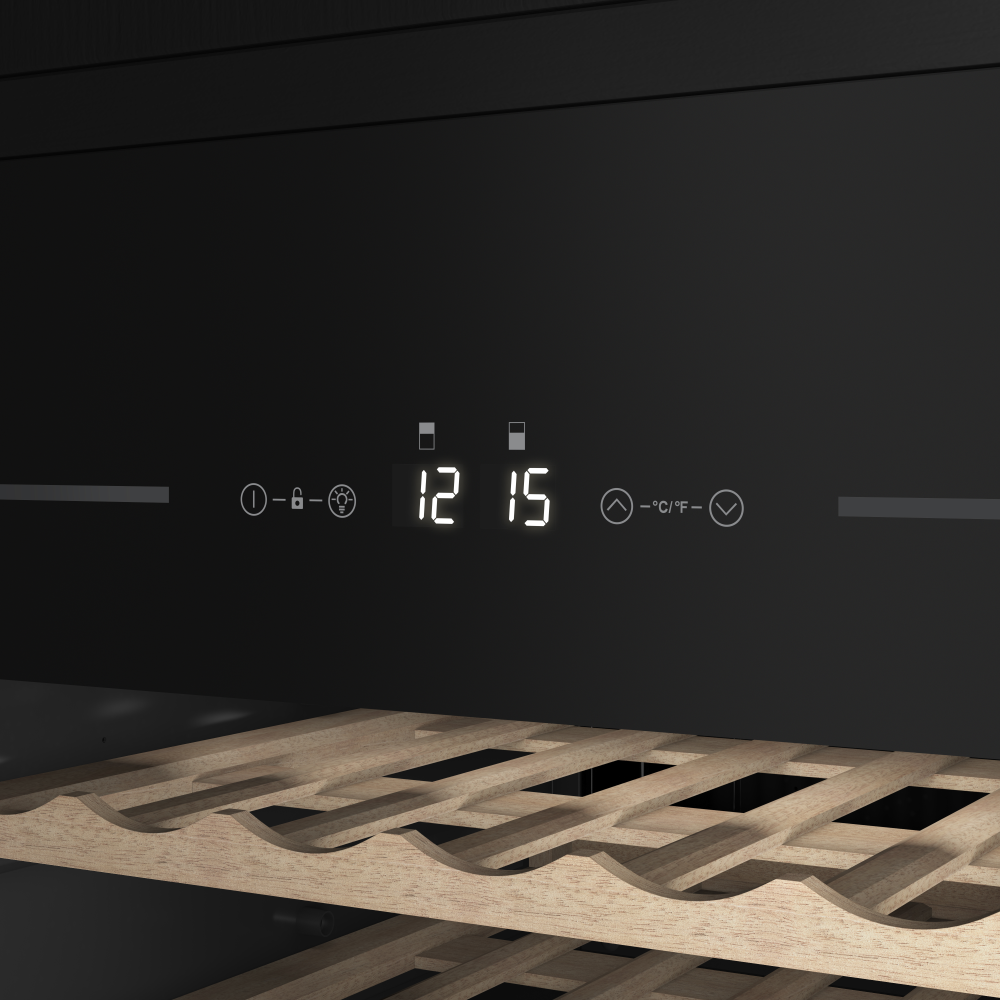 Система открывания нажатием (push-to-open) обеспечивает эстетичный внешний вид без видимых ручек, сохраняя целостность дизайна кухни. Шкаф относится к климатическому классу F/SN/N/ST, что подтверждает его надежную работу в широком диапазоне окружающих температур. Это решение сочетает в себе передовые технологии хранения вина с элегантным дизайном для истинных ценителей.