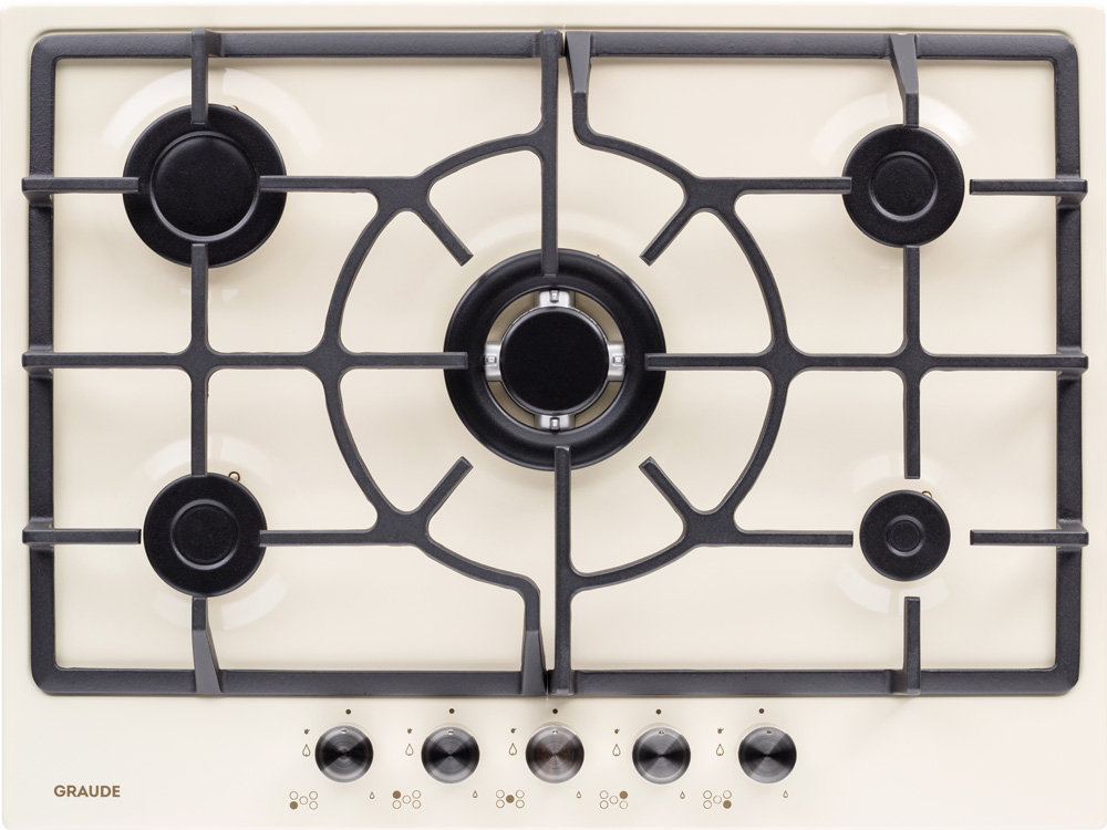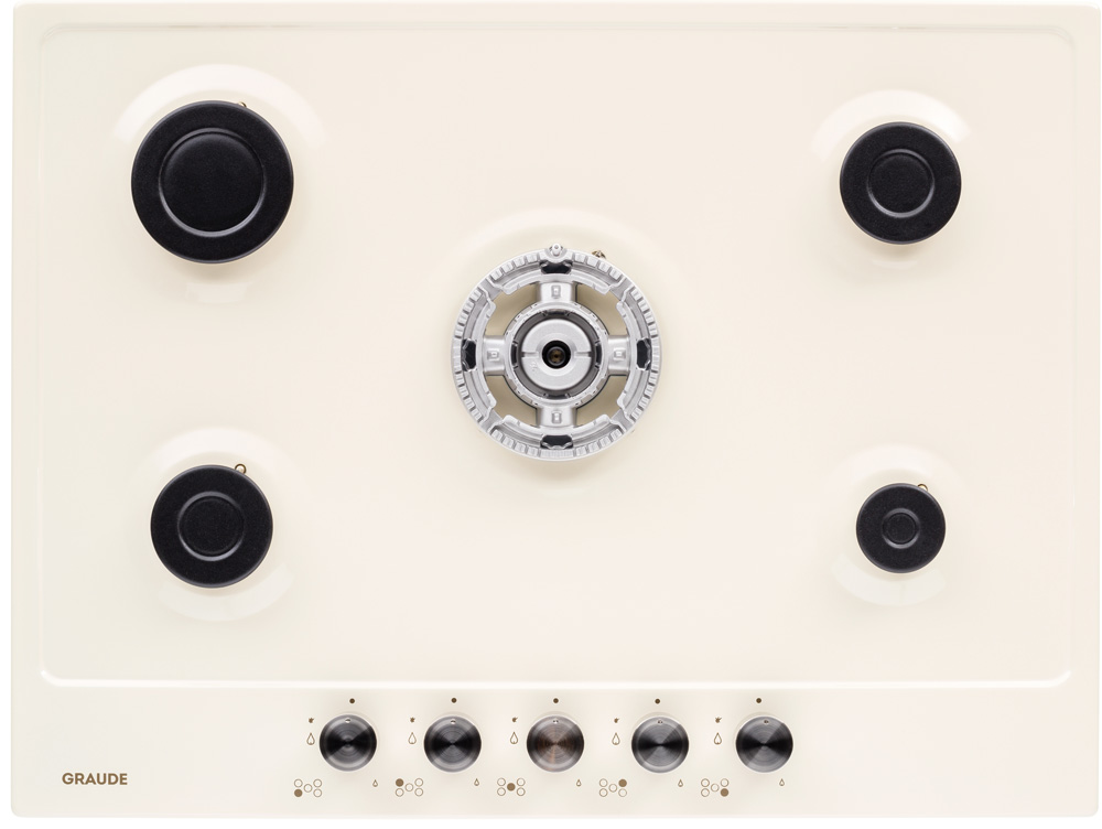 Компактная газовая панель шириной 70 см с 5 конфорками, включая WOK. Поворотные переключатели обеспечивают удобное управление. Система «Газ контроль» и автоматический электроподжиг гарантируют безопасность.