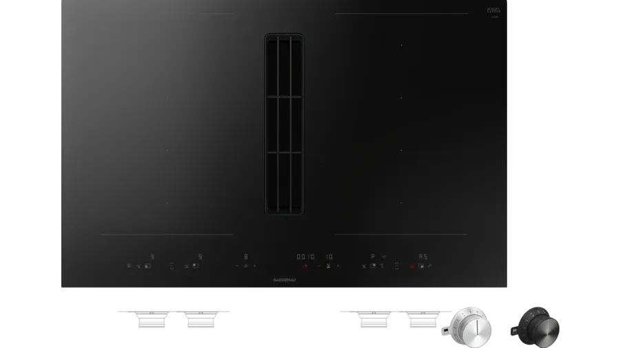 Встроенная в панель вытяжка производительностью до 636 м³/час, Возможность выбрать цвет ручек, Ручки управления продаются отдельно
