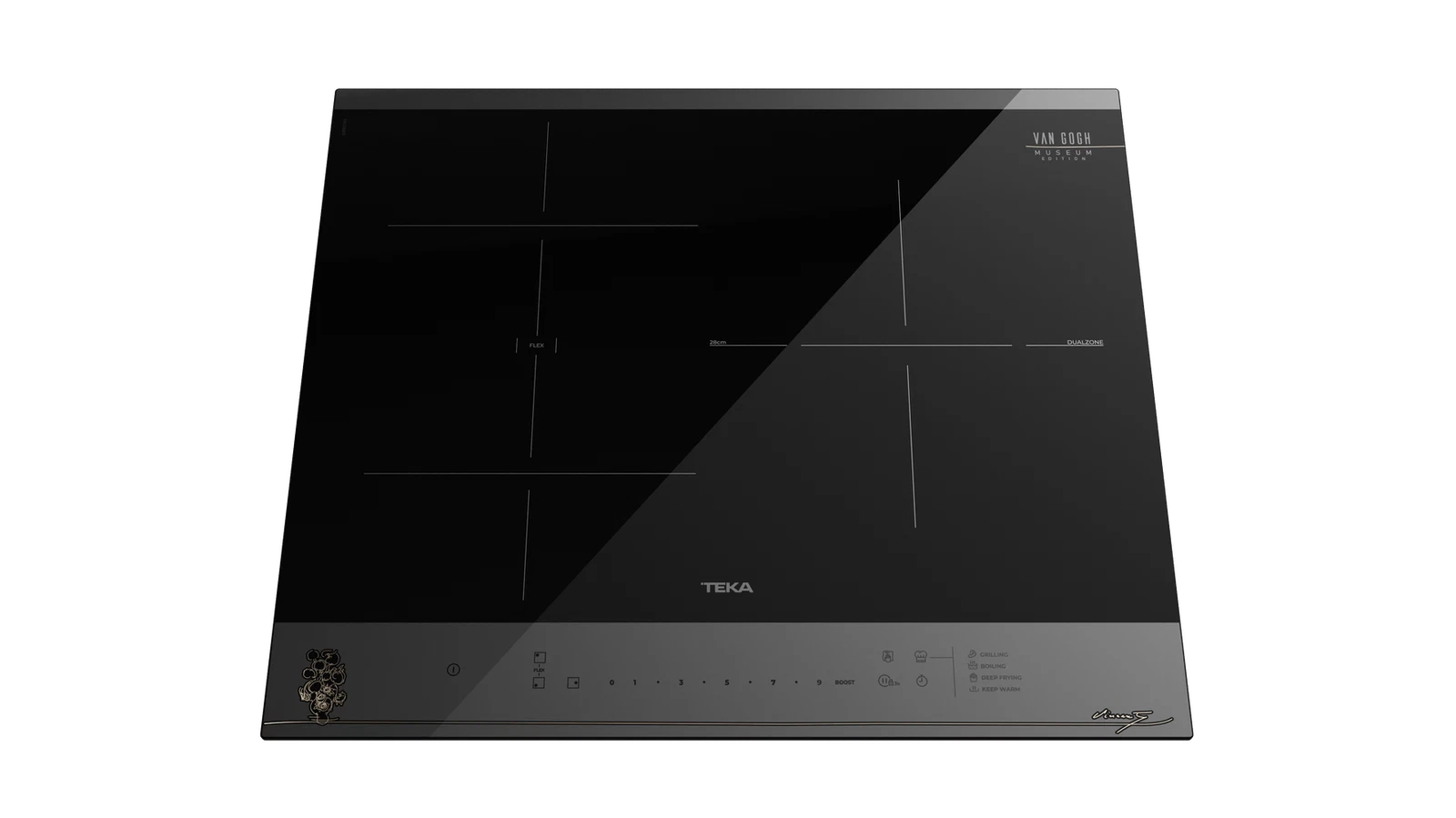 60-сантиметровая индукционная панель из эксклюзивной коллекции Van Gogh сочетает в себе художественное наследие великого мастера с современными технологиями приготовления. Черная стеклокерамическая поверхность Quartzuim Glaskeramik® украшена изысканной шелкографией с подписью Ван Гога и эскизом подсолнухов в благородном цвете шампань, превращая кухонную технику в подлинное произведение искусства.
