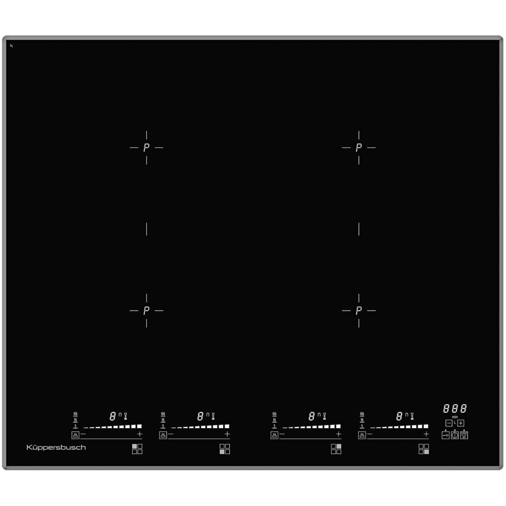 - 4 варочные зоны 210 x 190 мм / 2100 Вт (3700 Вт*)
