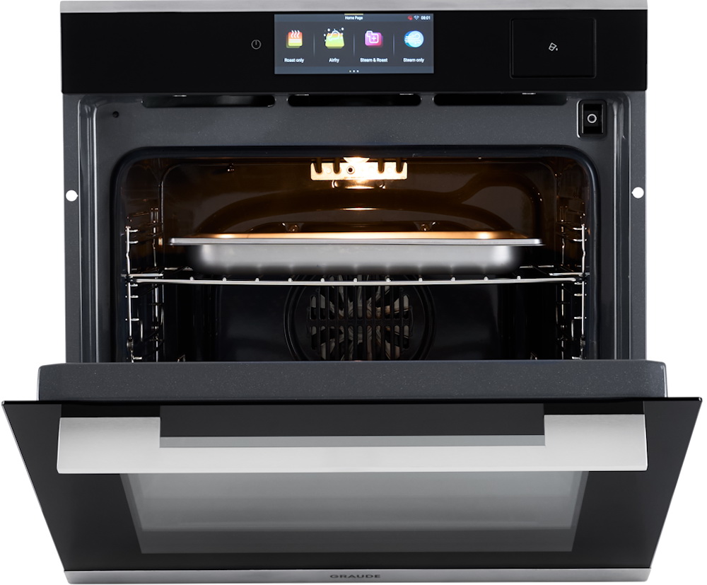 Среди ключевых функций – традиционный нагрев с конвекцией, гриль, приготовление на пару, таймер и отсрочка старта. Духовка поддерживает 10 режимов работы, включая верхний и нижний нагрев, комбинированные программы и конвекцию.