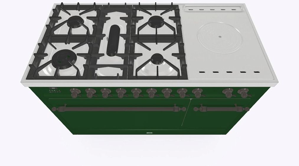 - Тип конфорок: 5 газовых, чугунная тарелка «Coupe de Feu» с кольцами