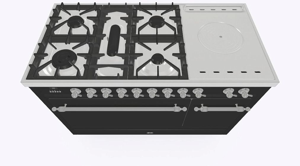 • Тип конфорок: 5 газовых, чугунная тарелка «Coupe de Feu» с кольцами