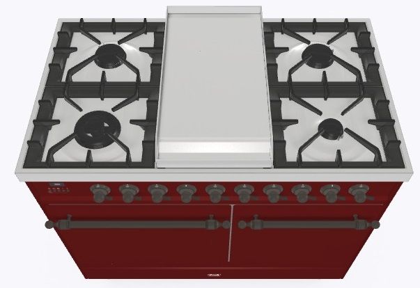 • Тип конфорок: 4 газовые конфорки, Dual конфорка, жарочная поверхность Fry Top