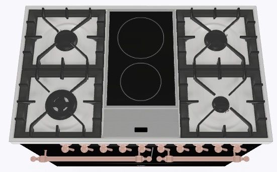 2 индукционные, 4 газовые, 1 Dual конфорка