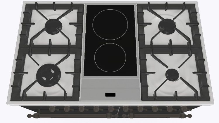 2 индукционные, 4 газовые, 1 Dual конфорка