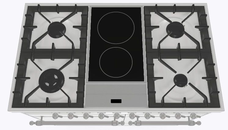2 индукционные, 4 газовые, 1 Dual конфорка
