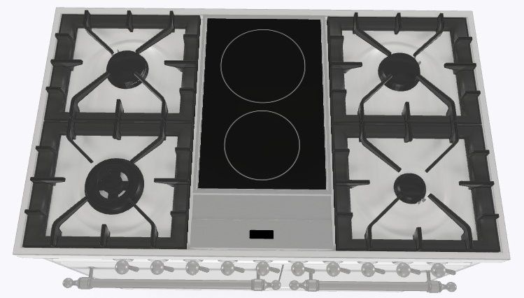 2 индукционные, 4 газовые, 1 Dual конфорка