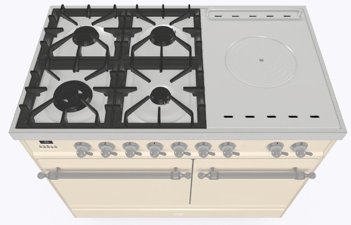 • Тип конфорок: 4 газовые конфорки, WOK конфорка, жарочная поверхность Coup de Feu