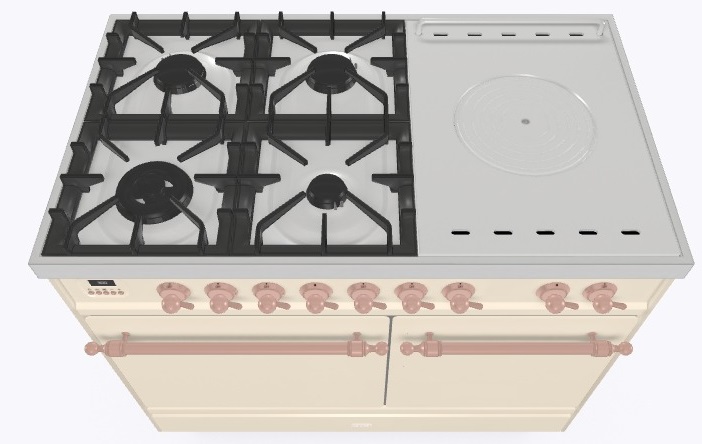 • Тип конфорок: 4 газовые конфорки, WOK конфорка, жарочная поверхность Coup de Feu