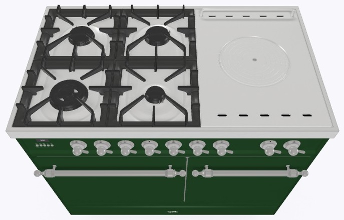 - Тип конфорок: 4 газовые конфорки, WOK конфорка, жарочная поверхность Coup de Feu