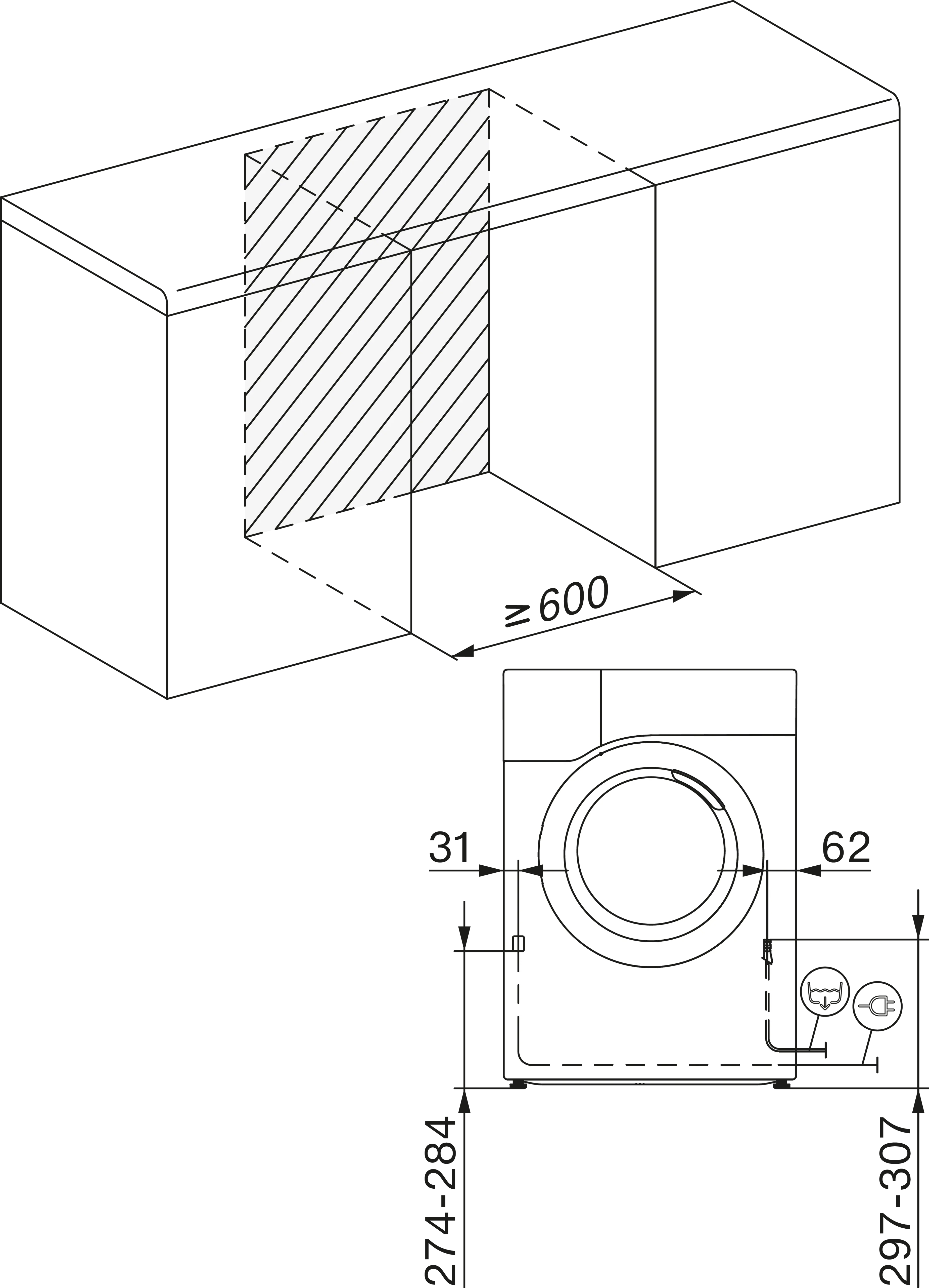 Сушильная машина поддерживает различные варианты установки: отдельностоящую, в паре со стиральной машиной, под столешницу или в колонну с использованием переходника WTV 501. Компактные габариты (850×596×636 мм) и вес 55 кг делают модель универсальным решением для любого дома.