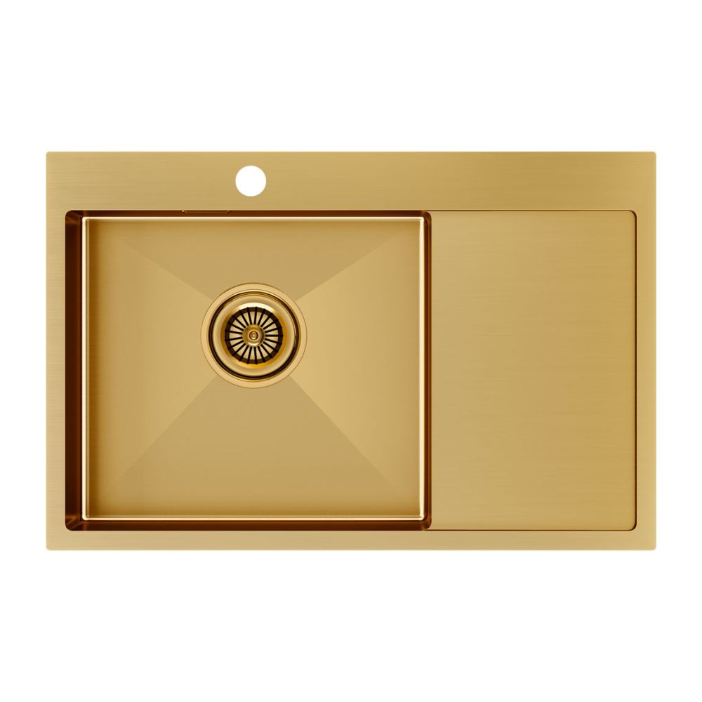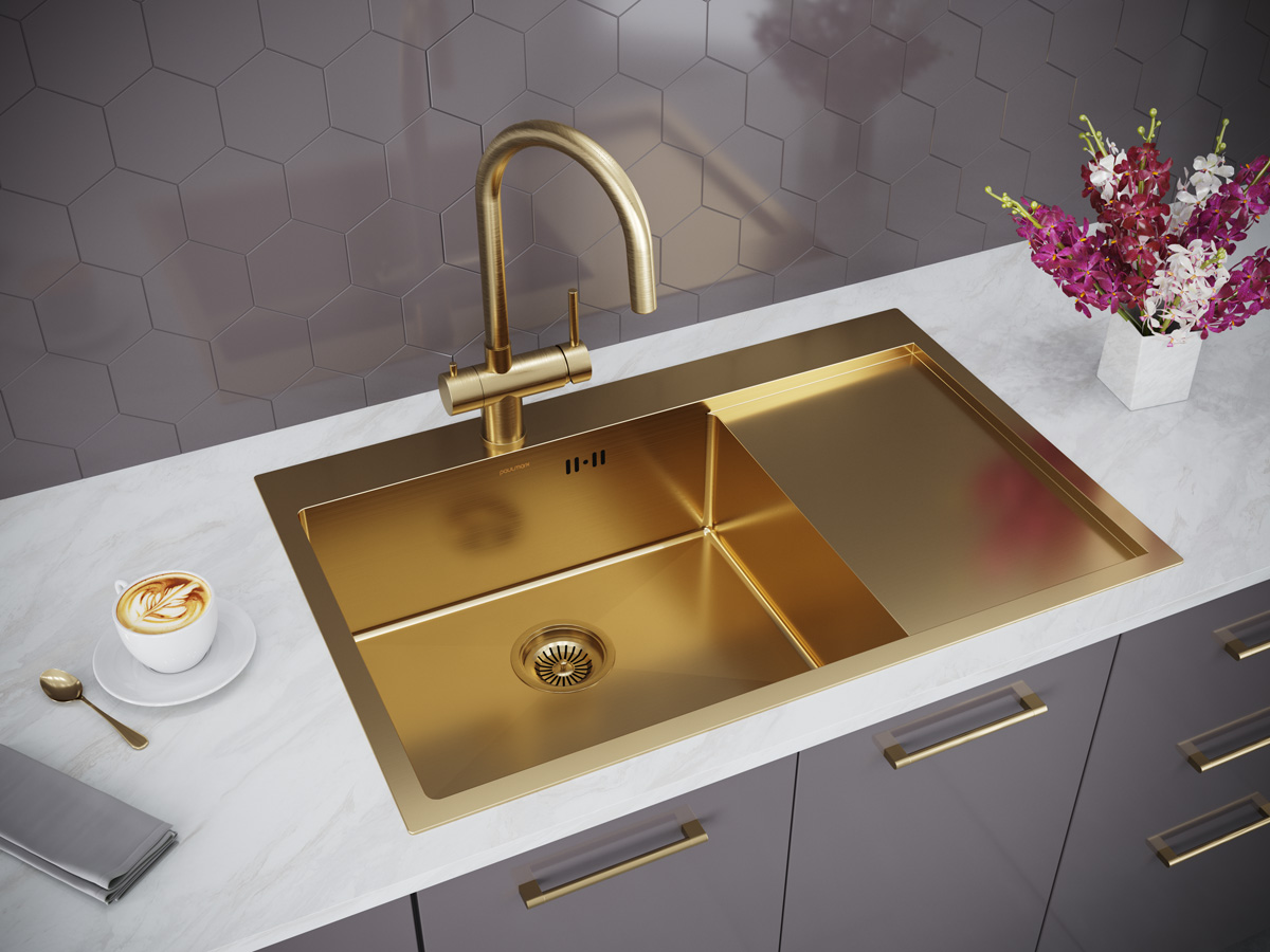 Мойки KRONER 78F в оттенках BG и GM имеют прочное PVD покрытие, которое нанесено на нержавеющую сталь. Оно особенно устойчиво к появлению царапин и истиранию, не содержит микротрещин и является экологически чистым.