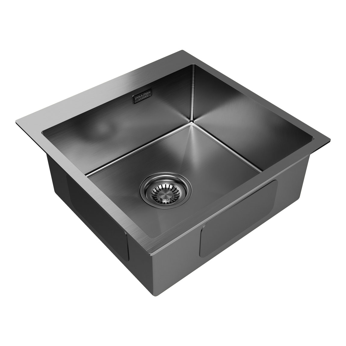 PVD покрытие в цветах воронёная сталь / брашированное золото (GM / BG) на внешней поверхности мойки для кухни VELTEN 51 – это особый метод напыления, путём прямой конденсации пара наносимого материала, который позволяет поверхности мойки быть особенно устойчивой к появлению царапин и истиранию. Такое покрытие является не только декоративным, но и защитным слоем, оно плотно и равномерно прилегает к основе, не содержит микротрещин.