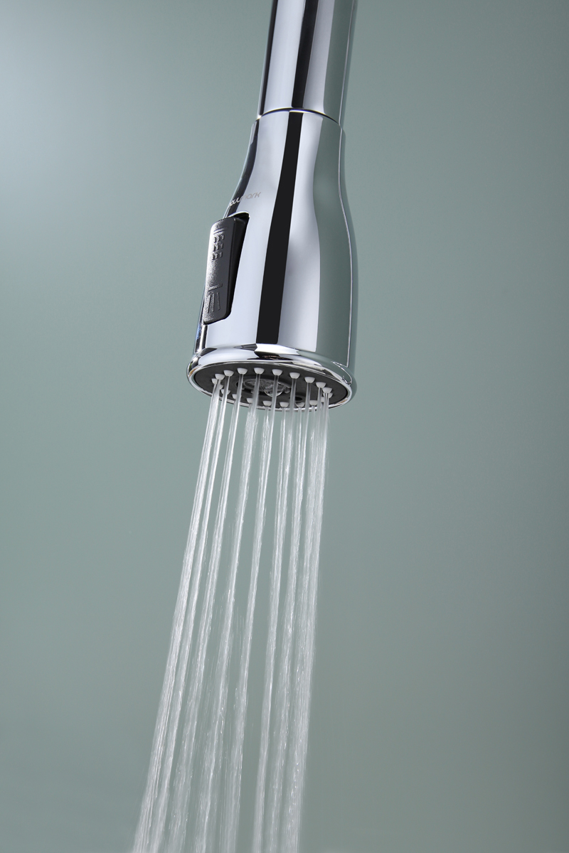 Помимо подачи стандартной струи, смеситель оснащен функцией подачи воды в режиме «душ» для идеального промывания посуды и продуктов