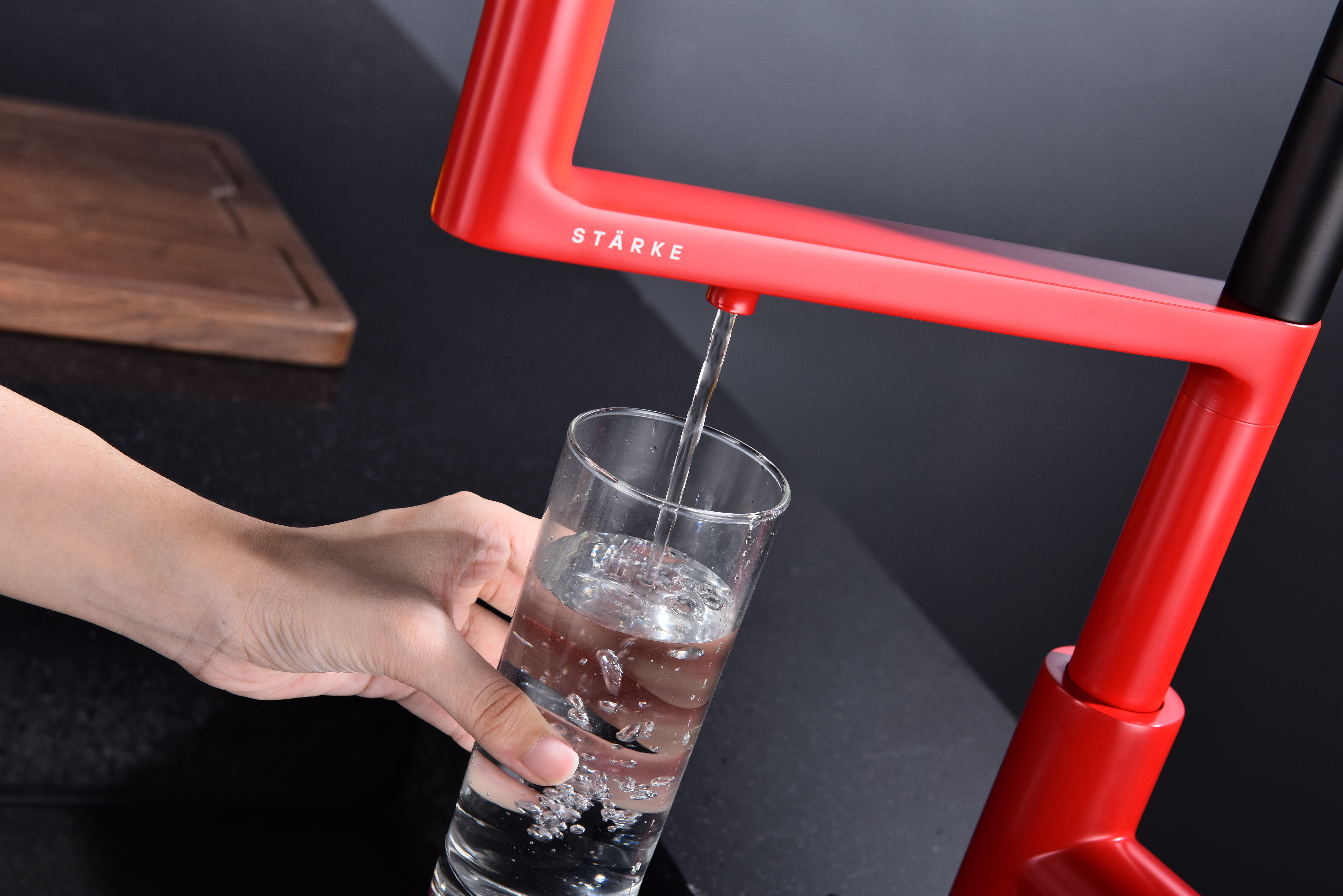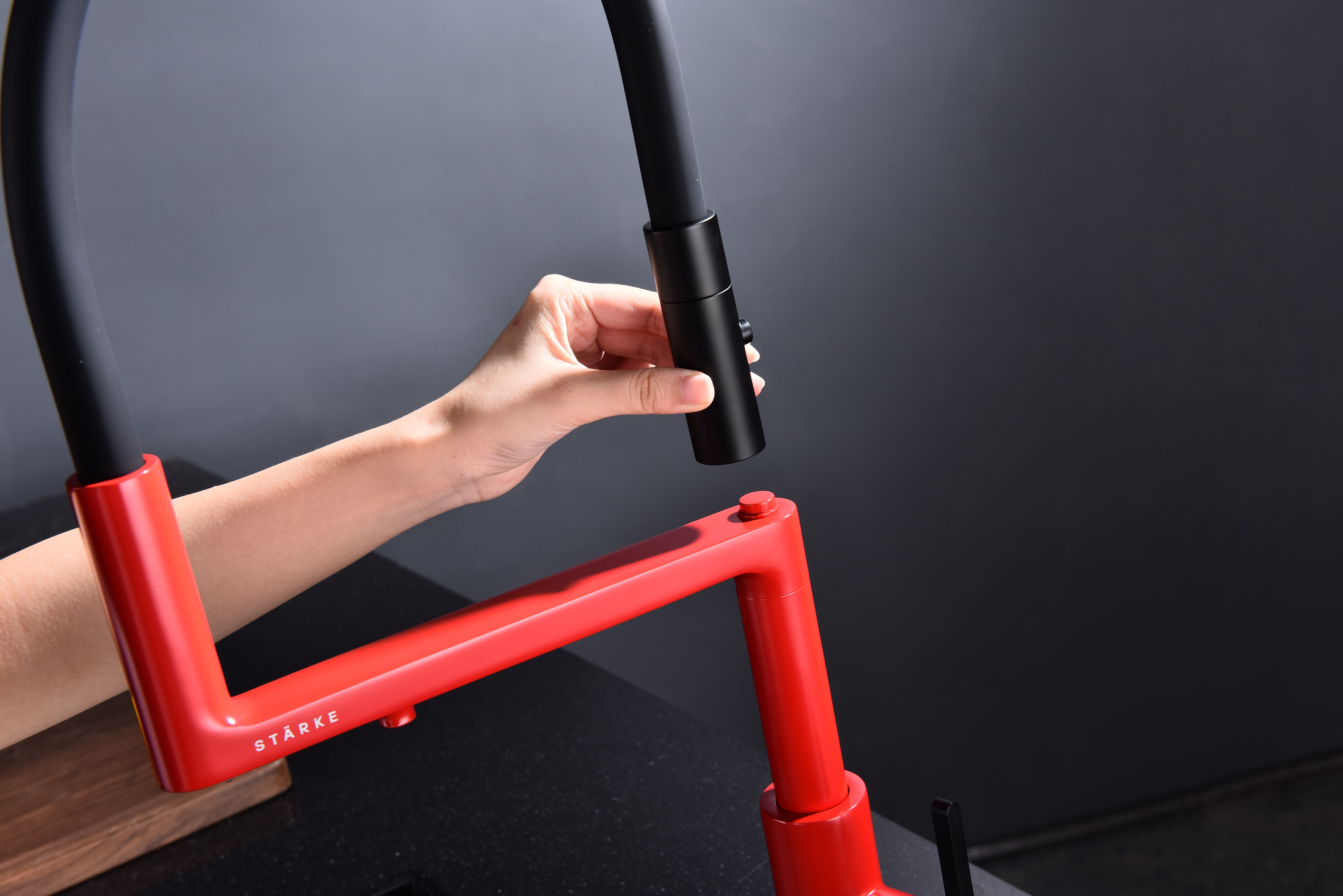 TORNADO оснащён функцией TRINKWASSER – в смесителе присутствует встроенный независимый канал для питьевой воды из фильтра, которая подается из отдельного аэратора на латунной части излива. Водопроводная вода подаётся из гибкого силиконового излива. Управление питьевой водой производится рычагом слева. Рычаг справа управляет подачей водопроводной воды. Совмещение подачи питьевой и водопроводной воды в одном смесителе избавляет от необходимости ставить дополнительный кран и позволяет сделать зону мойки максимально эстетичной.