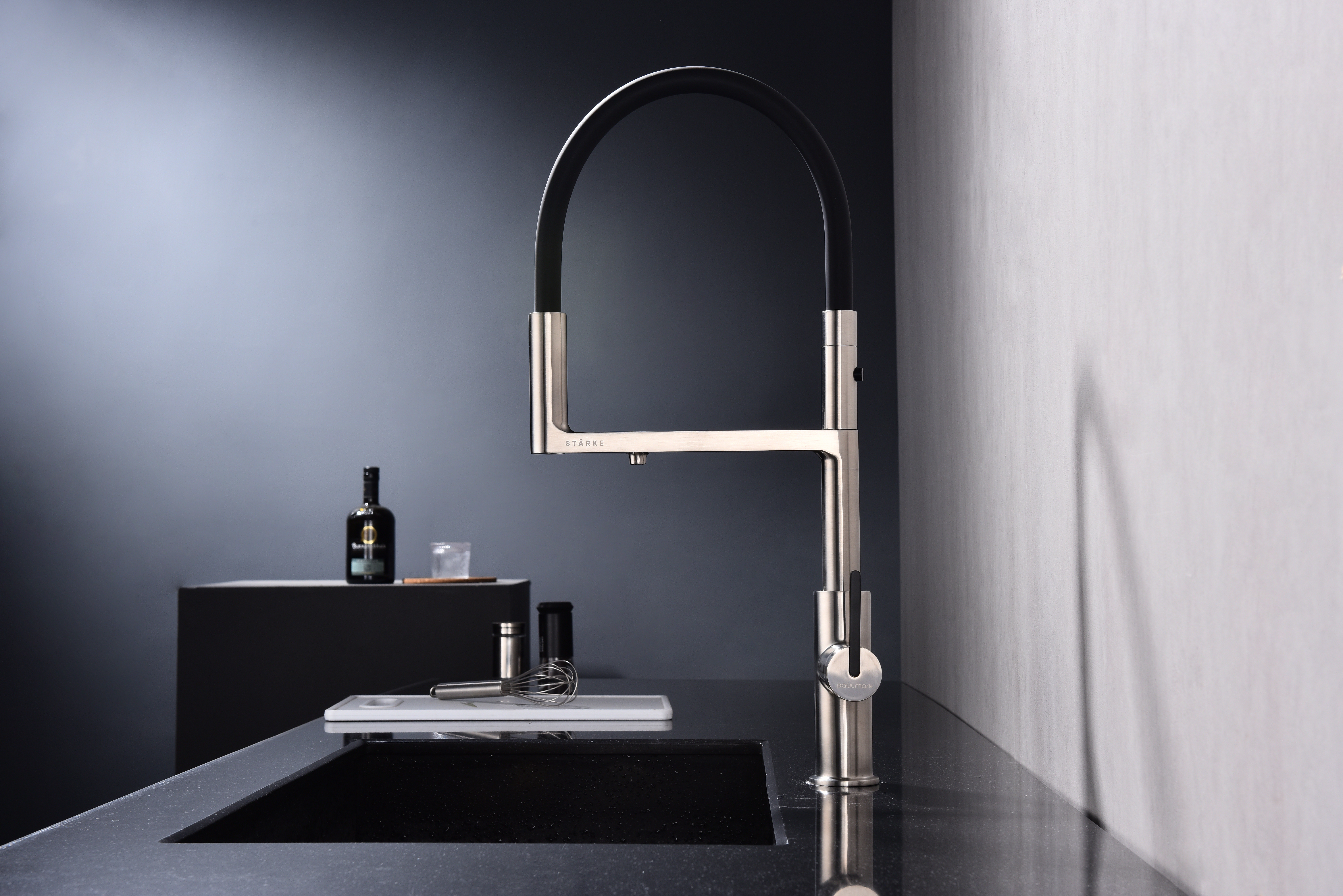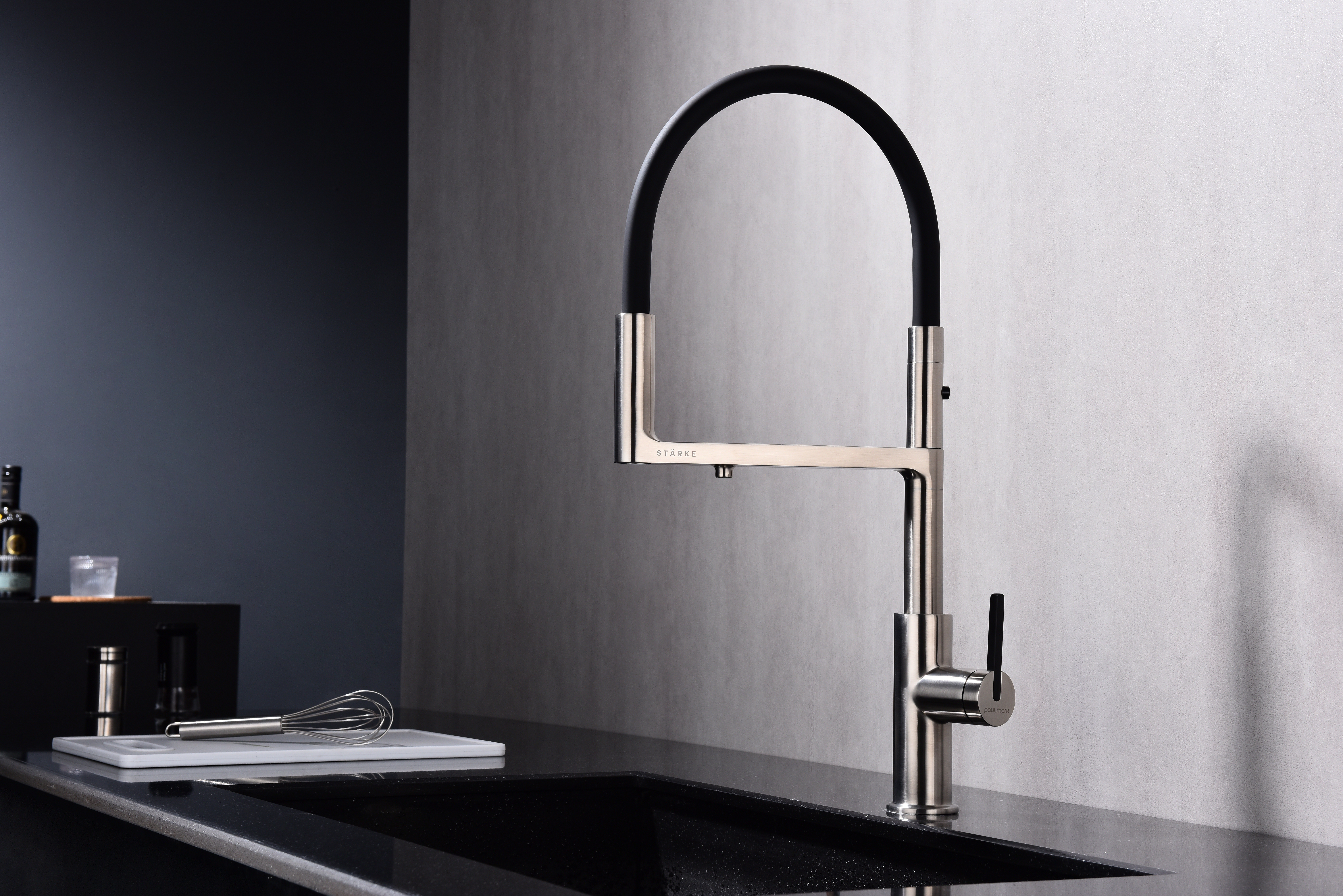 Многофункциональный смеситель для кухни TORNADO – модель премиальной серии «Starke» кухонной сантехники бренда Paulmark изготовлен из высококачественной латуни, которая отвечает высочайшим европейским стандартам качества, не содержит свинца, не разрушается со временем и безопасна для здоровья.